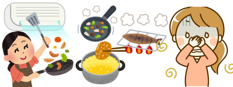 換気扇をつけずに料理をすると、その汚れた空気は運転中のエアコンにどんどん吸われていきます。