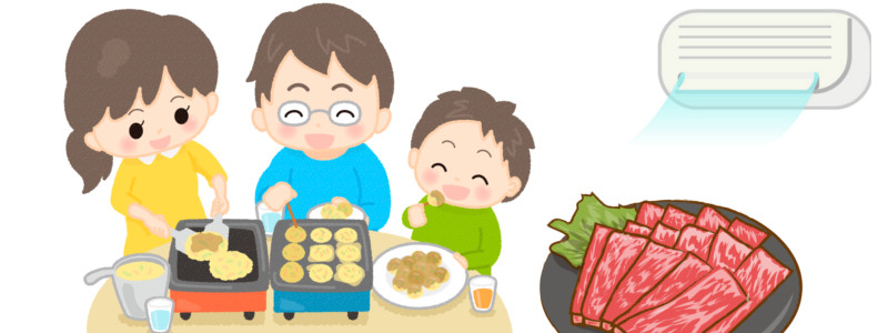 ちなみに、ホットプレートやカセットコンロを使用した卓上での焼き肉時のエアコンの使用は、私はおすすめしません。