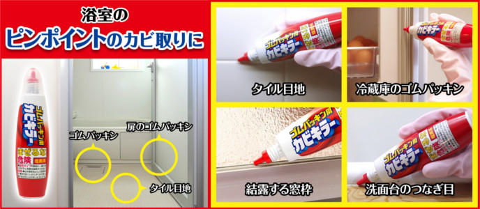 浴室だけでなく、洗面台や結露する窓のゴムパッキンなどにも幅広く使えますよ。