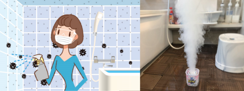 浴室内に置いてある、洗面器やシャンプーなどのボトルが同時に除菌できるのもうれしいですね。
