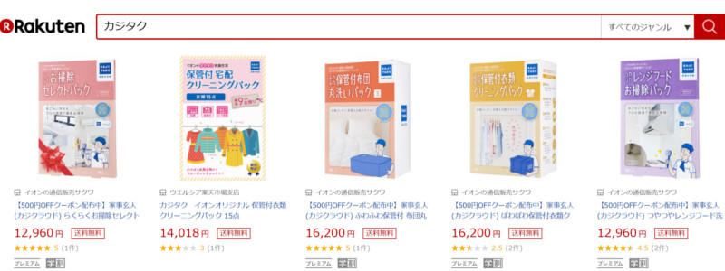 Amazonや楽天、LOHACOなどの通販サイトで「カジタク」と検索します。
