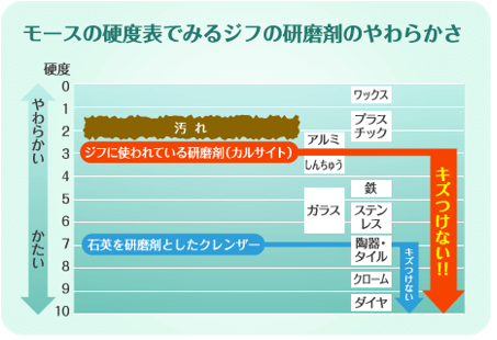 ジフ・クリームクレンザーに使用されている研磨剤は「カルサイト」という物質です。